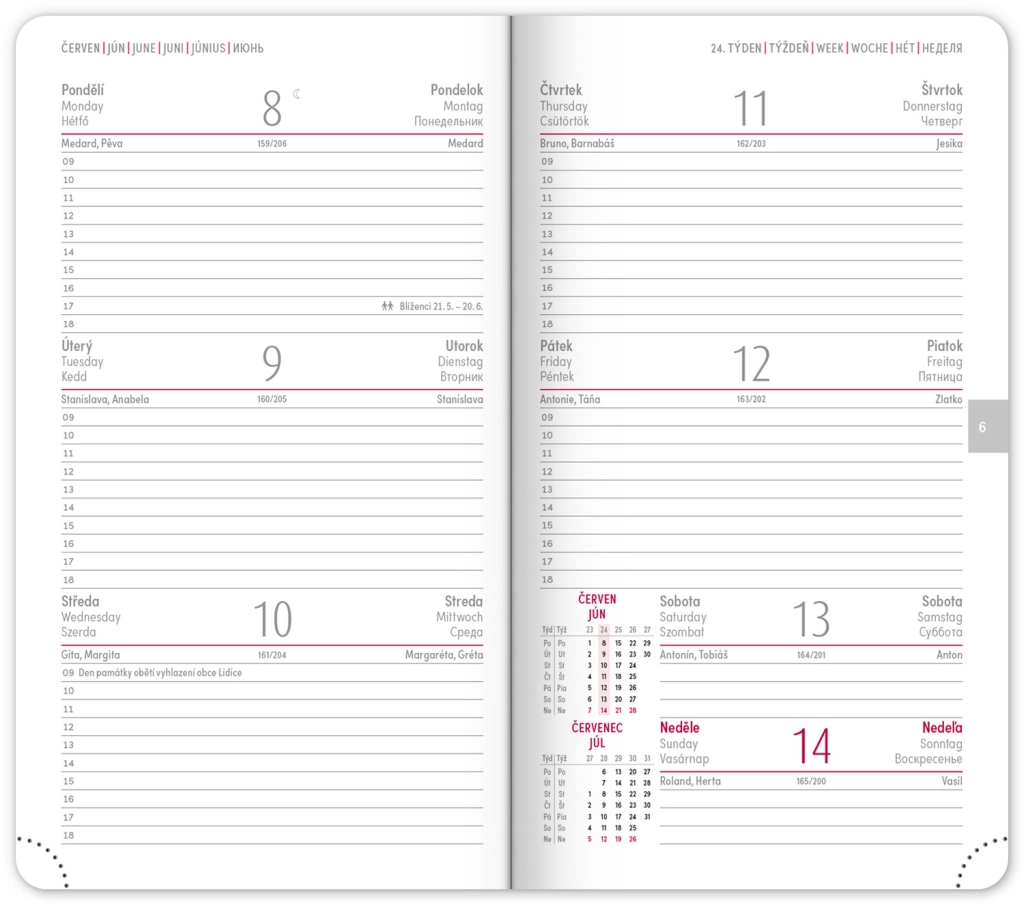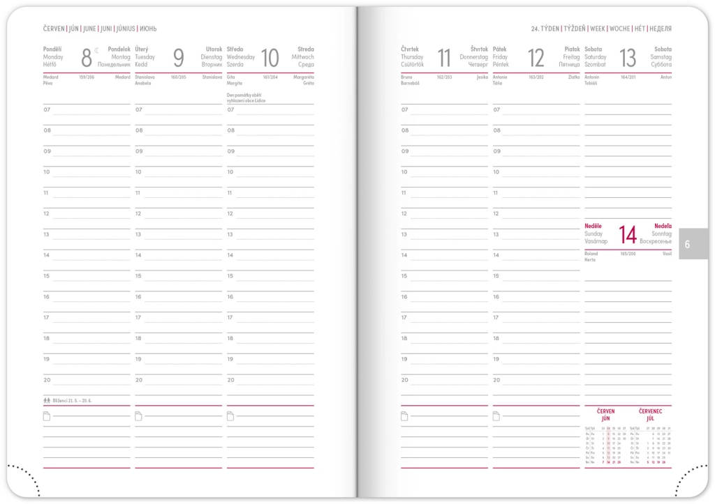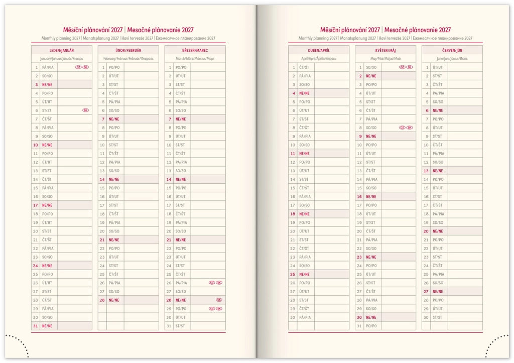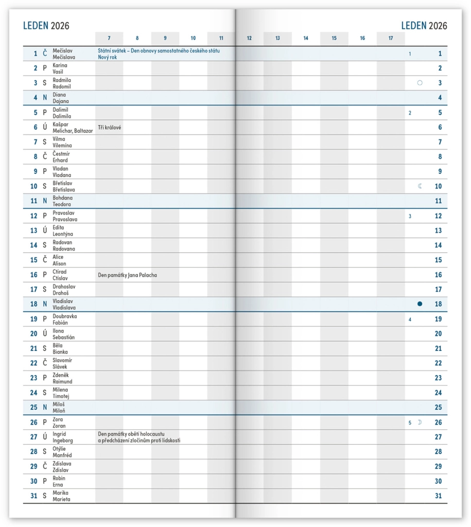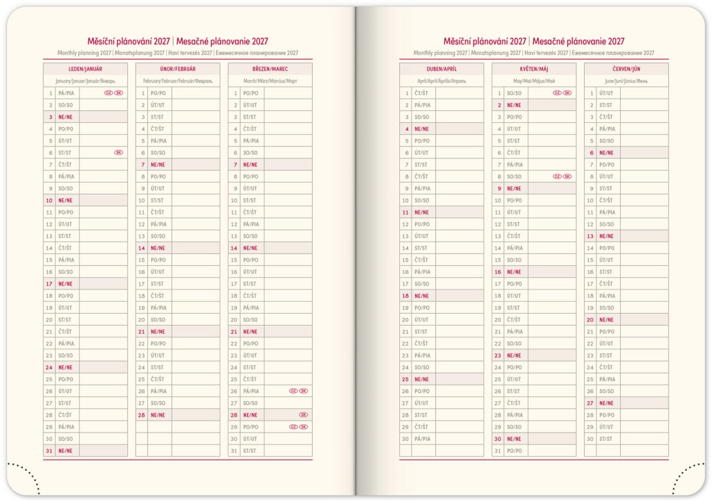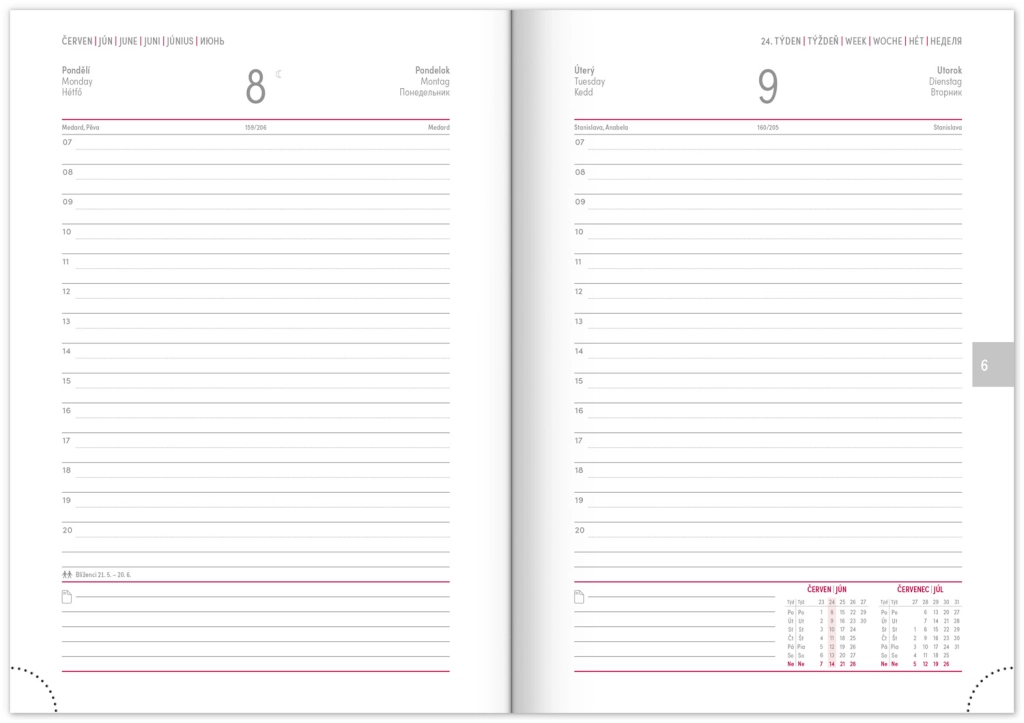 Premišljena notranja razdelitev ponuja mesečne preglede, to‑do sezname, cilje, stike in strani za zapiske. Izberite spiralno (krožno) vezavo za lahko obračanje ali trdo šivano vezavo z elastiko, držalom za pisalo, žepkom za malenkosti in perforiranimi vogali za hitro orientacijo. Kakovosten papir z višjo gramatura omejuje prepisovanje, odporne trde ali mehke platnice pa izstopajo tako v nahrbtniku kot na delovni mizi. Potrebujete šolski dnevnik za semester, delovni dnevnik za pisarno ali univerzalni planer brez datumov? Izberite razporeditev, ki vam ustreza: pregleden teden na dveh straneh za hitro planiranje, podroben dnevni razpored za veliko nalog ali kombinacijo z mesečnim koledarjem. Zaradi pametne razdelitve, motivacijskih elementov in jasne strukture boste organizirani, učinkoviti in mirni vsak dan.