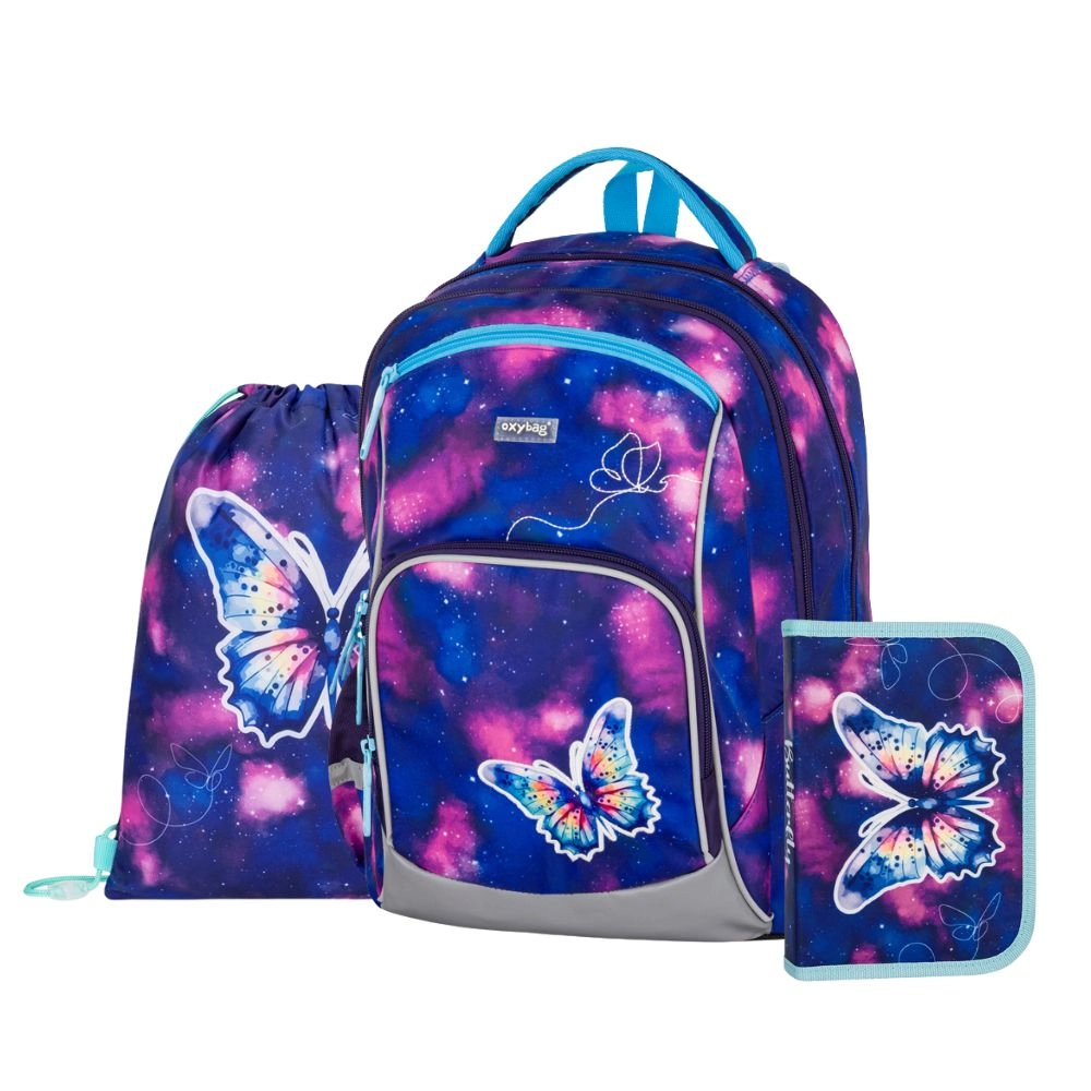 Nahrbtniki in aktovke v setih so ergonomski, lahki in varni: ergonomski šolski nahrbtnik ima anatomsko oblikovano, zračno hrbtišče, oblazinjene naramnice, nastavljiv prsni in ledveni pas ter odsevne elemente, vidne z vseh strani (odsevni elementi 360°). Trpežni in vodoodporni materiali z vodoodbojnim premazom, čvrsto dno, kakovostne zadrge in premišljena organizacija (glavni predal za učbenike, žep za zvezke A4, stranski žepi za plastenko, organizator za drobnarije, imenska kartica, obesek za ključe) olajšajo vsakodnevno uporabo in izboljšajo pregled nad šolskimi potrebščinami.