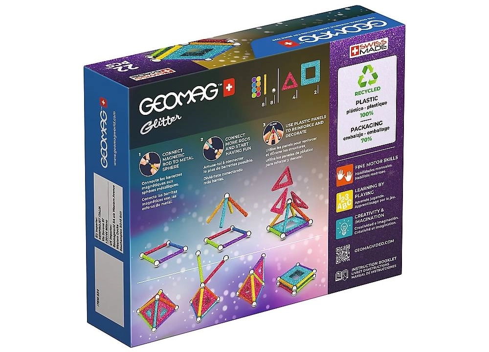 Izbirajte med priljubljenimi linijami Geomag: Magicube – magnetne kocke za najmlajše, Classic/Pro-L in Panels – paličice, kroglice in paneli za napredne, ter Mechanics in Mechanics Gravity za eksperimente s prenosi, vrtenjem in gravitacijo. Geomag podpira STEM izobraževanje, fiziko, geometrijo in kreativni dizajn; ediciji Supercolor in Glitter navdušita z barvami in efekti. Izbrane sete odlikuje uporaba recikliranih materialov. Enostavno izberete pravo magnetno otroško sestavljanko glede na starost, temo in število delov – od začetnih setov do obsežnih kompletov. Linije Classic, Panels, Pro-L in Mechanics se nadgrajujejo in omogočajo razširjanje ter kombiniranje modelov, medtem ko je Magicube idealen za samostojno sestavljanje iz magnetnih kock. Z Geomagom dobite vzdržljivo izdelavo, stabilne konstrukcije in neskončne možnosti sestavljanja za male in velike graditelje.