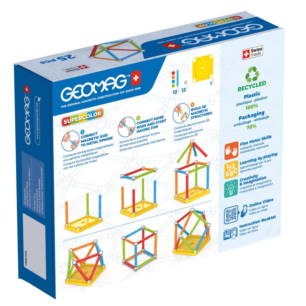 Magnetni svet Geomaga vas takoj posrka v ustvarjanje in raziskovanje. Izvirne magnetne stavebnice Geomag združujejo magnetne paličice, kovinske kroglice in barvne panele v stabilne 3D konstrukcije, ki razvijajo fino motoriko, logično razmišljanje in prostorsko predstavo. Odkrijte magnetizem, kjer je vsako sestavljanje kreativno, izobraževalno in polno zabave – idealna STEM igrača za otroke.