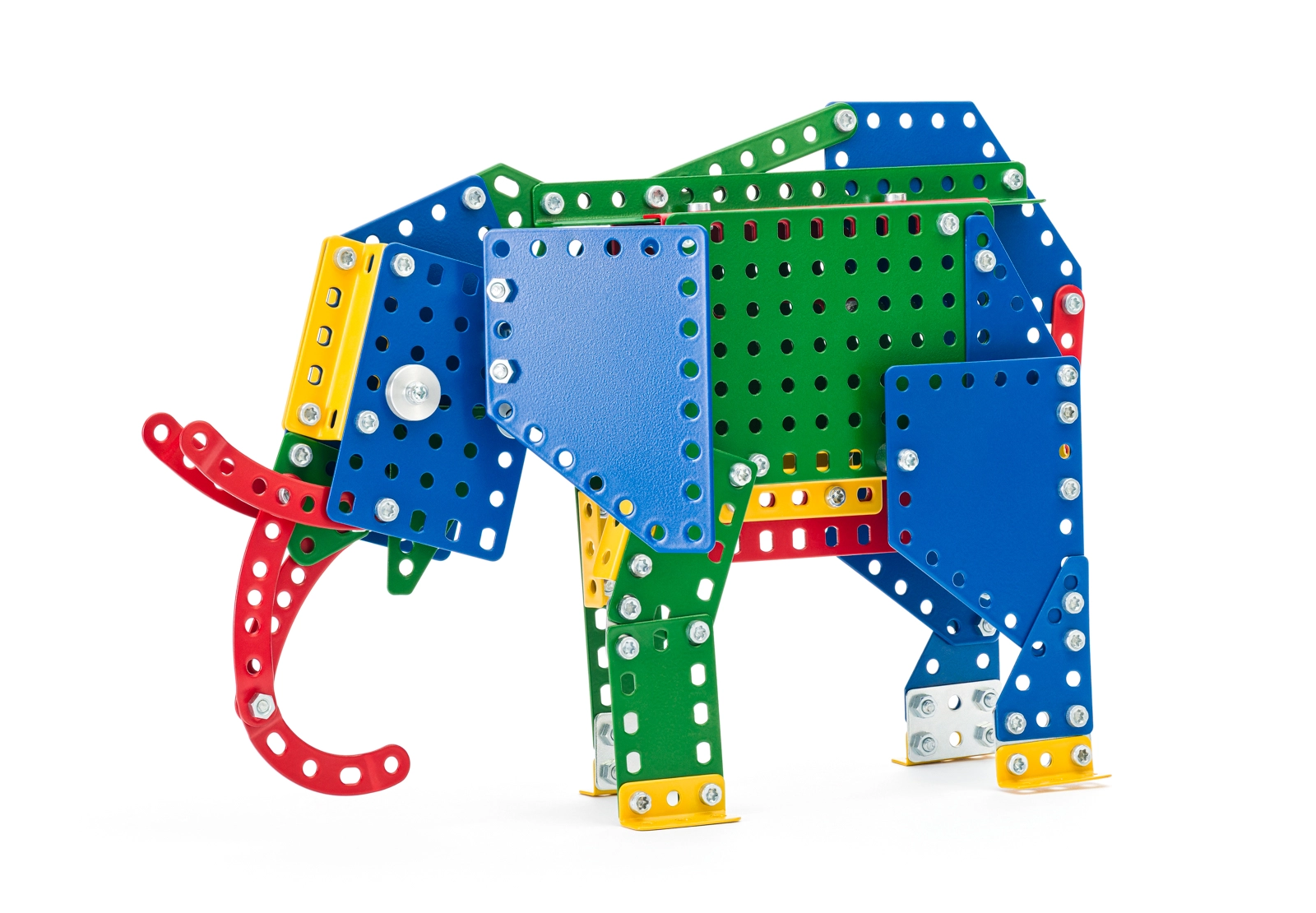 Zasukajte vijake in matice z legendarno češko znamko Merkur! Kovinski konstruktorji Merkur iz kakovostnega jekla razvijajo kreativnost, tehnično razmišljanje in fino motoriko. Iz pločevinastih delov, trakov, kotnikov in profilov boste zgradili žerjav, avto, most in letalo, vključno s funkcionalnimi mehanizmi s prenosi, gredmi in kolesci. Standardizirane razdalje med luknjami omogočajo enostavno spajanje in razširjanje modelov – čakajo vas neskončne možnosti konstrukcij za otroke in odrasle.