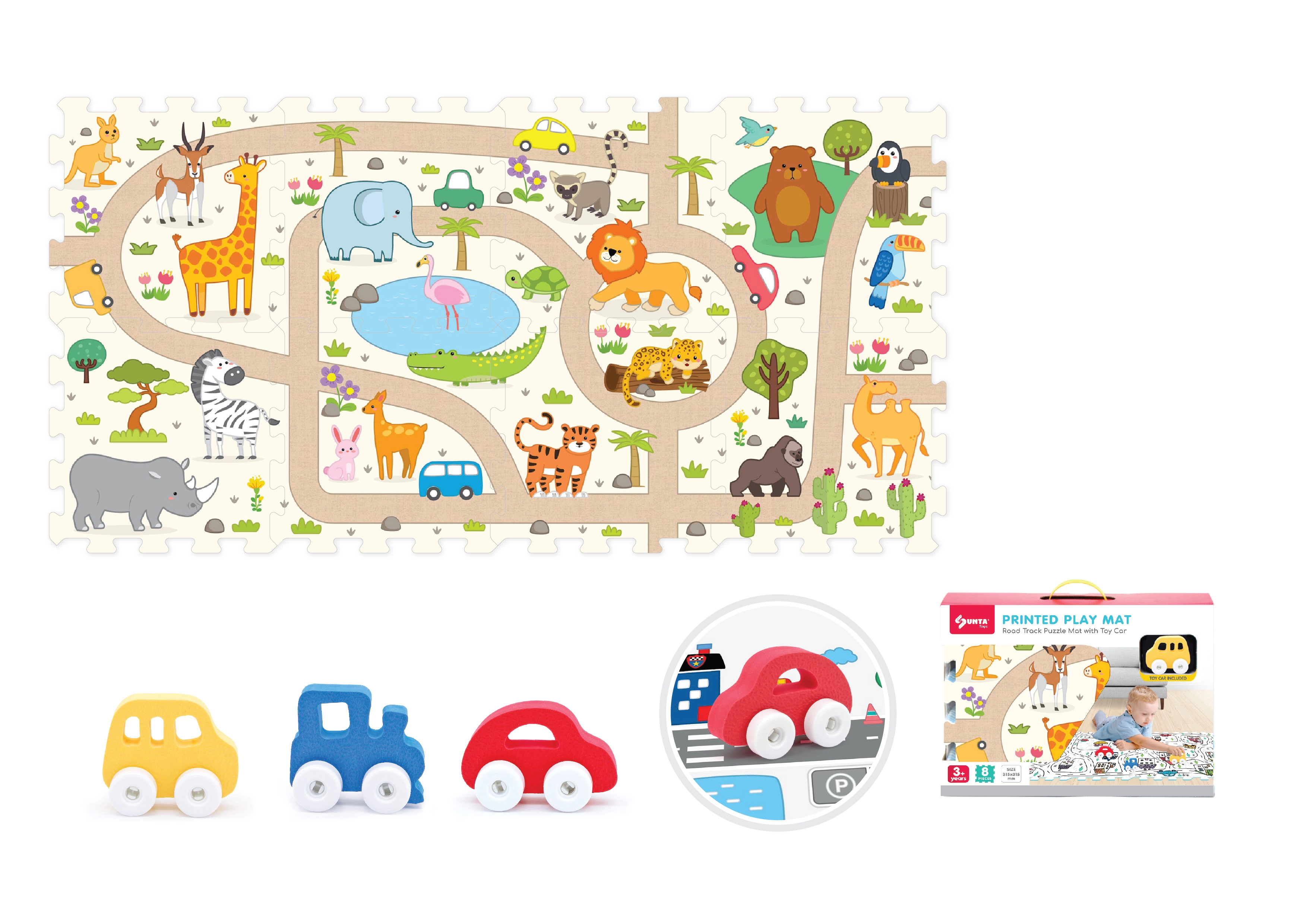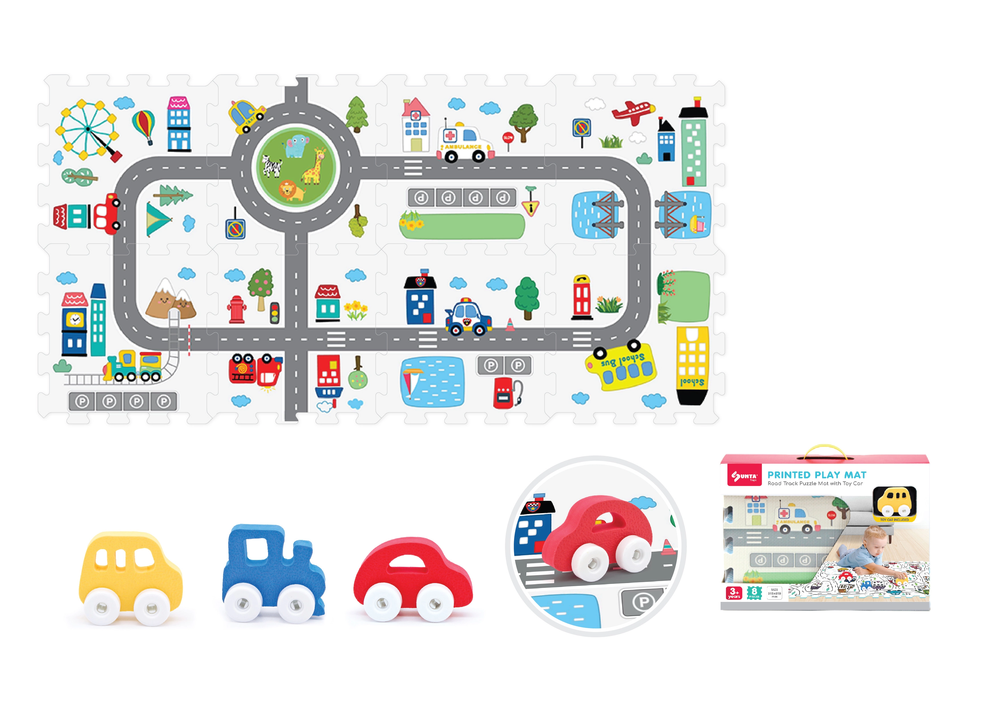 Pestre barve in motivi razvijajo fino motoriko, koordinacijo oko–roka ter spoznavanje barv, oblik, številk in črk. Modularni sistem omogoča prilagoditev velikosti otroške penaste podloge prostoru, dodajanje delov ali robnih letvic ter ustvarjanje igralne površine točno po meri. Lahke in kompaktne talne penaste sestavljanke hitro zložite in pospravite – idealne za otroško sobo, igralnico in na pot.
