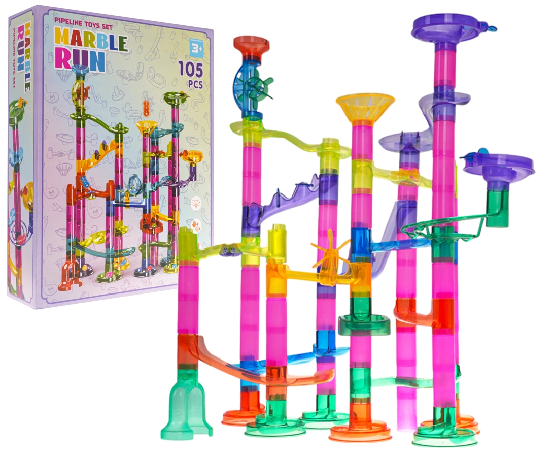 Spustite kroglice po stezi in prebudite radovednost s krogelnimi stezami Marble! Krogelne steze Marble so pametna konstrukcijska sestavljanka, v kateri gravitacijska proga, tuneli, izmenjevalniki in naklon vodijo kroglice po napeti trasi. Spodbujajo logično razmišljanje, ustvarjalnost, STEM in razumevanje fizikalnih principov, zato je krogelna steza hkrati zabavna in poučna igrača.