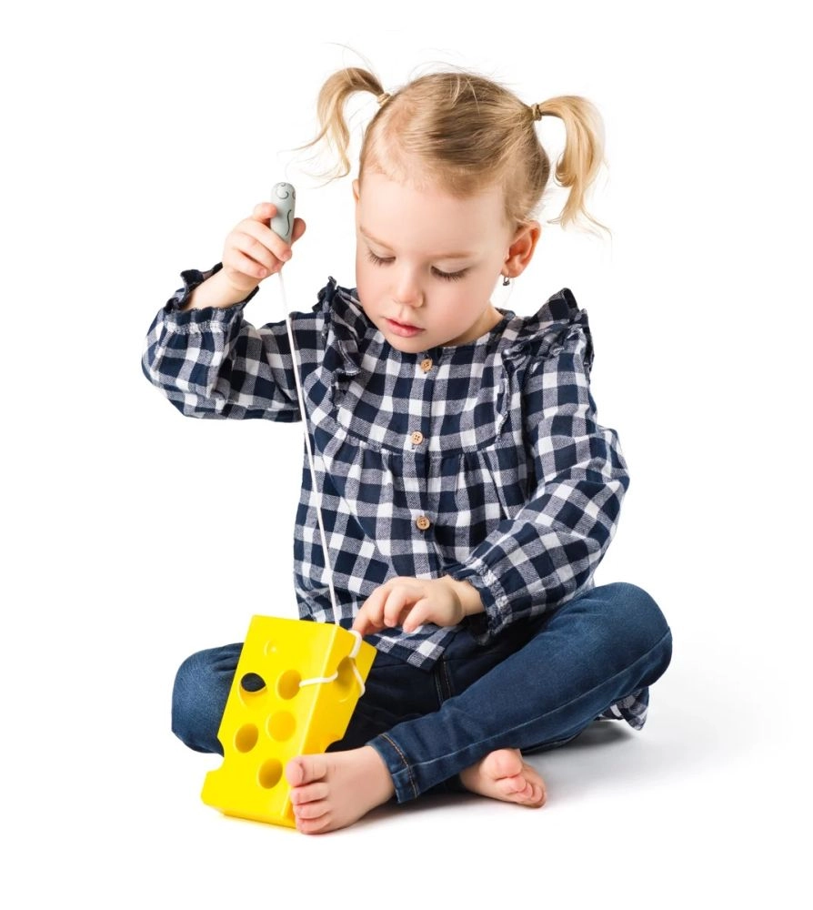 Razmigajte otroške prstke s pametnimi lesenimi motoričnimi igračami! Lesene motorične igrače za otroke spodbujajo fino motoriko, koordinacijo oko–roka, potrpežljivost in zbranost ter prinašajo učenje skozi igro za malčke in predšolske otroke. Ravnanje z oblikami, vrvicami in biseri razvija prijem, pincetni prijem, grafomotoriko in prostorsko predstavljivost.