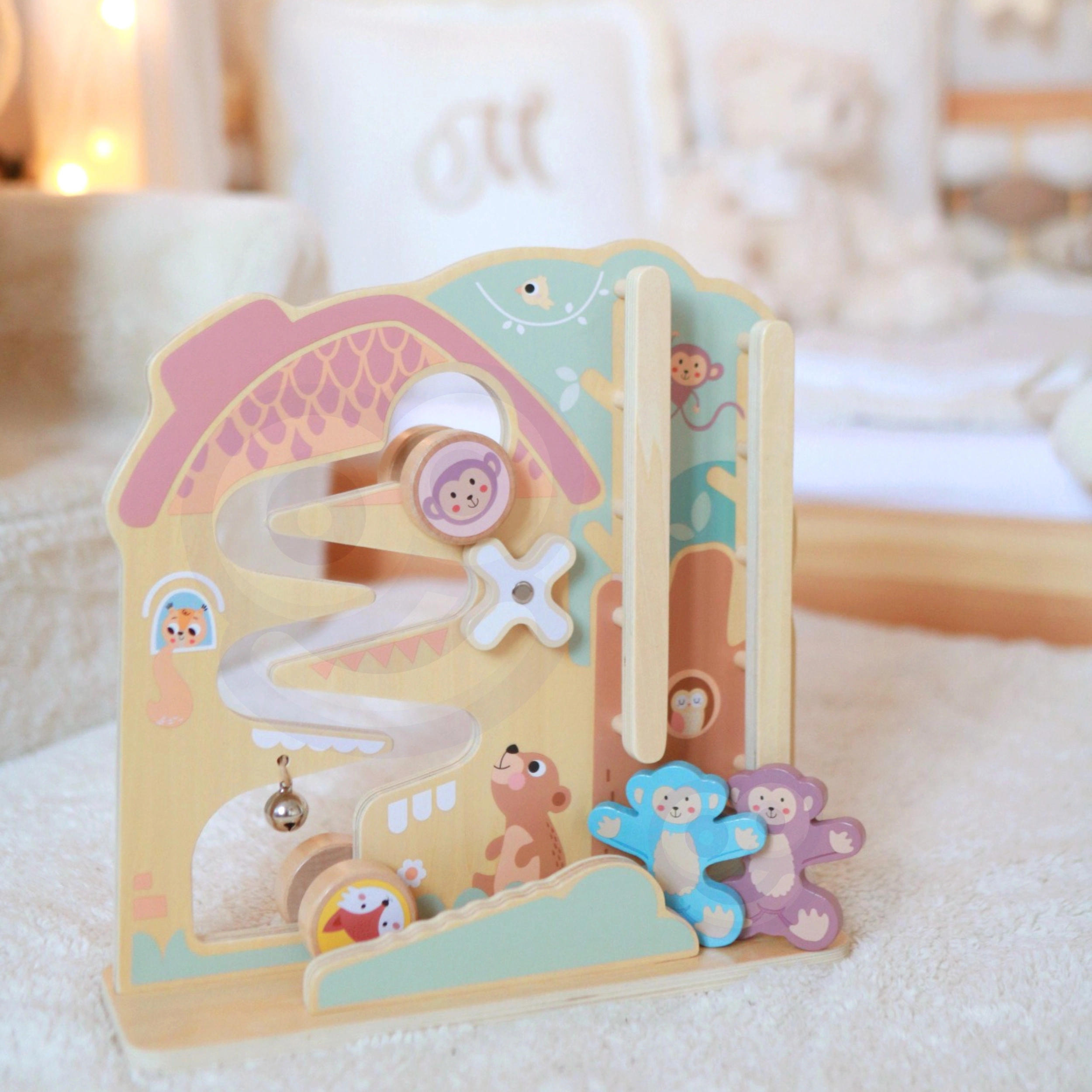 Kakovostni materiali in natančna izdelava zagotavljajo varno in trpežno igro. Gladki robovi, les iz odgovornih virov in z vodo redčljive barve so prijazni do otrok in narave, medtem ko izrazite barve in prijetna tekstura spodbujajo čutno zaznavanje. Izberite lesene motorične igrače glede na starost in veščine otroka – od velikih oblikovnih vstavljank za najmlajše, preko nizank z biseri in vijačnih setov, pa vse do kompleksnih motoričnih kock in labirintov.
