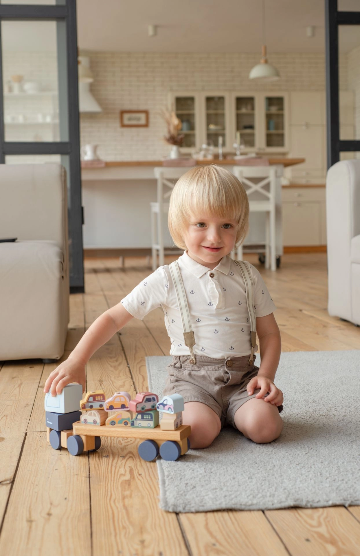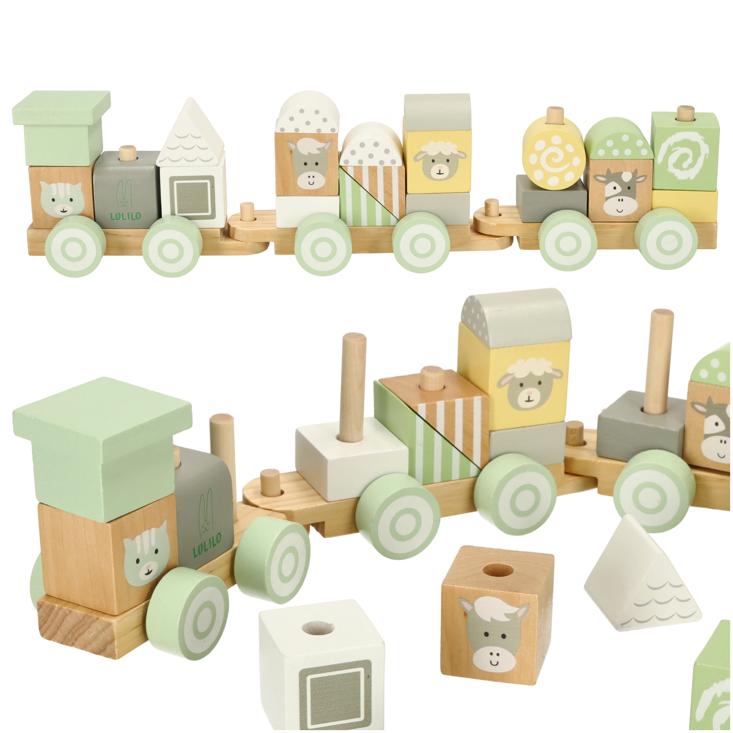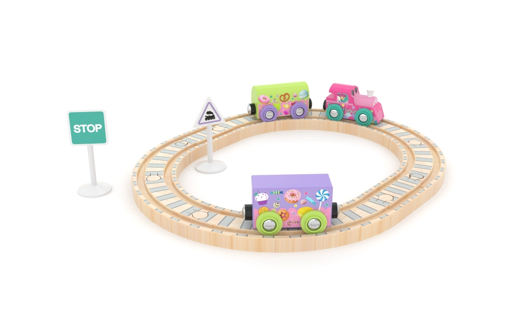 Gradnja lastne vlakovne proge in mesta razvija fino motoriko, koordinacijo oko–roka in logično razmišljanje. Odprta kreativna igra podpira domišljijo ter učenje o prometu in pravilih v cestnem prometu. Leseni vlaki za otroke in leseni avtomobilčki so preprosto razširljivi: modularni leseni tiri, kretnice, križišča in prečkanja cest, magnetni vagoni in lokomotive – vse je variabilno in običajno kompatibilno z običajnimi lesenimi vlakovnimi progami. Za začetek izberite začetni komplet vlakovne proge s tiri, lokomotivo in vagoni ali pa posezite po razširitvah: kompleti tirov, kretnice, mostovi, predori, postaje, železniški prehodi in dodatki, kot so prometni znaki ali figurice. Za cestni svet dodajte garažo, parkirišče, servis in tematska vozila (dirkalni avto, avtobus, gasilci, policija). Leseni vlaki in avtomobilčki izstopajo po dolgi življenjski dobi, okolju prijaznem materialu in neskončni zabavi za male strojevodje in voznike.