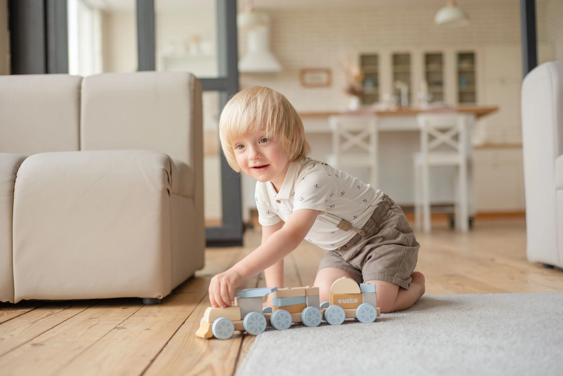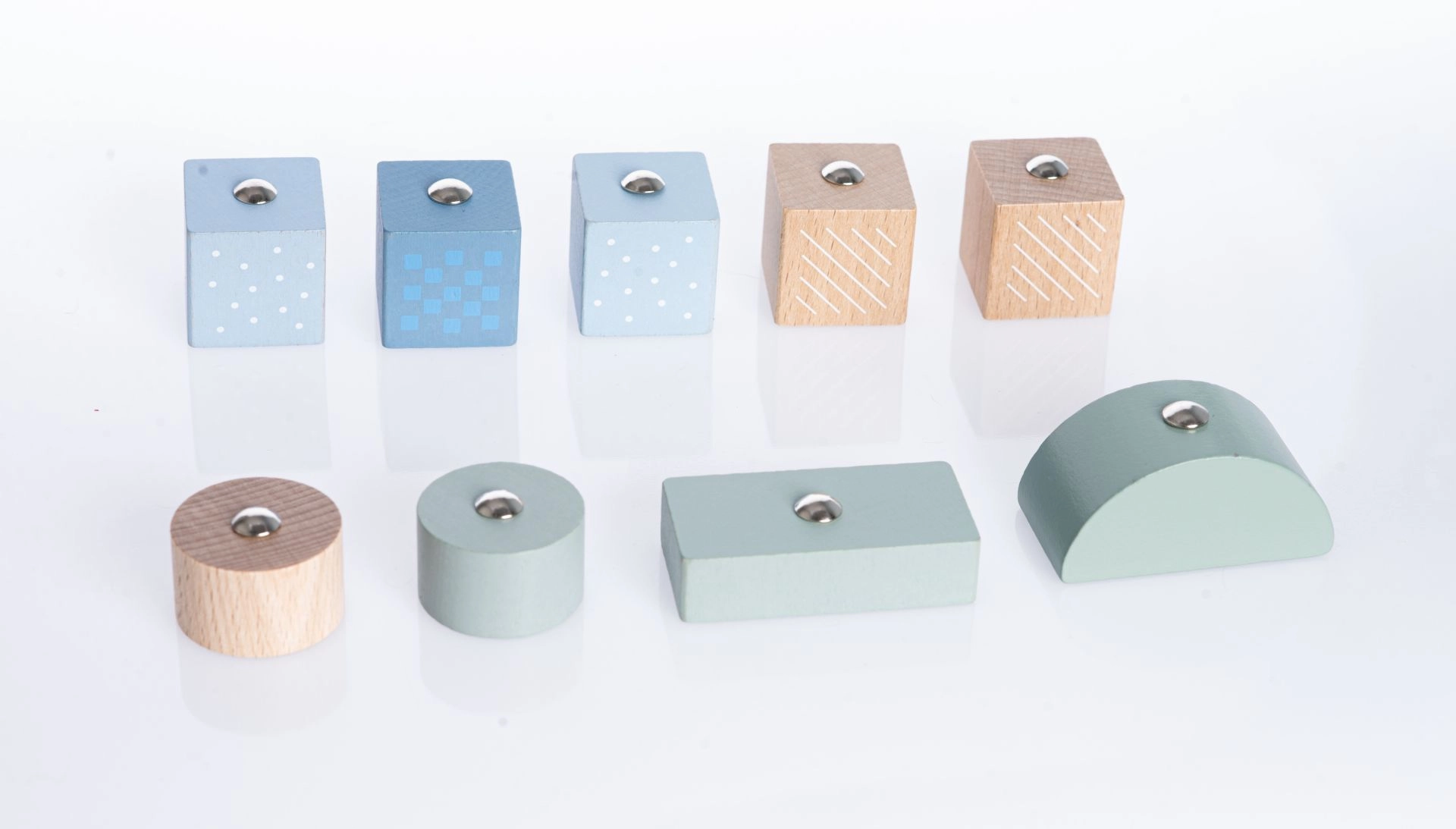 Zazvonite z zvoncem in zaženite motorje – kategorija Vlaki in avtomobilčki vabi otroke v neskončne dogodivščine po tirih in cestah. Leseni vlaki, lokomotive in vagoni z magnetnimi spojkami, kakovostni leseni tiri, prehodi, mostovi, predori in postaje, poleg tega leseni avtomobilčki, ceste, parkirišča in prometni znaki – vse za realistično igro. Poudarek na varnih površinah, vzdržljivi izdelavi in brezčasnem dizajnu iz naravnih materialov.