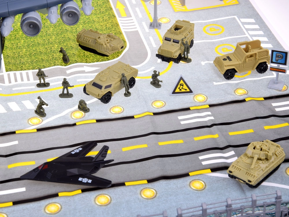 Zaženite akcijo z vojaško tehniko za otroke, ki bo otroško sobo spremenila v taktično bazo – tanki, vojaški avtomobili, oklepni transporterji, vojaška vozila, lovska letala, helikopterji in bojne ladje. Modeli izstopajo po realističnih podrobnostih, kot so vrtljive kupole, gibljive gosenice, odpirajoča se vrata ali podvozja z gumijastimi kolesi. Zahvaljujoč odpornim materialom in natančni izdelavi zmorejo tudi vsakodnevne misije med igro.