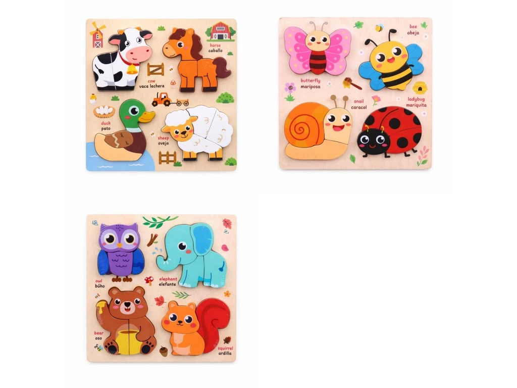 Izberite glede na starost in sposobnosti: preproste vstavljanke oblik in barv za 1–2 leti, puzzle z živalmi, prevoznimi sredstvi, abecedo in številkami za predšolske otroke ali zahtevnejše 3D sestavljanke in plastne puzzle. Različne stopnje zahtevnosti podpirajo zbranost, vizualno zaznavanje, prostorsko predstavljivost, spomin in reševanje problemov. Lesene puzzle in sestavljanke so idealno darilo za deklice in dečke ter ponujajo zabavo za dolge ure pri skupnem sestavljanju.