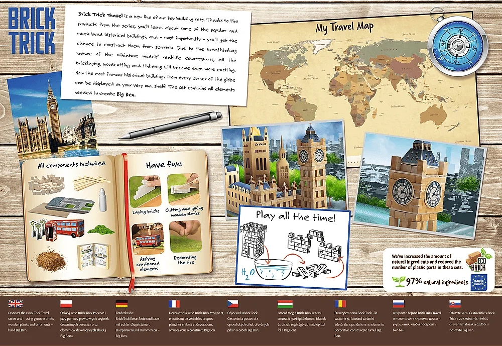 Opečne sestavljanke so izobraževalne in spodbujajo ustvarjalnost, fino motoriko, potrpežljivost ter prostorsko predstavo. Otroci in šolarji odkrivajo principe konstrukcij in STEM pri natančnem nameščanju vsake opeke, mešanju malte in načrtovanju gradnje. Delo z opekami deluje avtentično, je zabavno in varno – učenje skozi igro, ki zabava ure in ure. Tukaj najdete opečne sestavljanke in gradbene sete za začetnike in napredne: od začetnih kompletov do razširjenih arhitekturnih modelov z množico mini opek. Številne komplete je mogoče kombinirati in razširjati z dodatnimi opekami za otroke, da bo vaše mesto raslo kos za kosom; konstrukcije so odporne in materiali imajo dolgo življenjsko dobo. Opečna sestavljanka je odlično darilo za male graditelje, ki obožujejo kreativno 3D gradnjo in realistične sestavljanke iz opek.