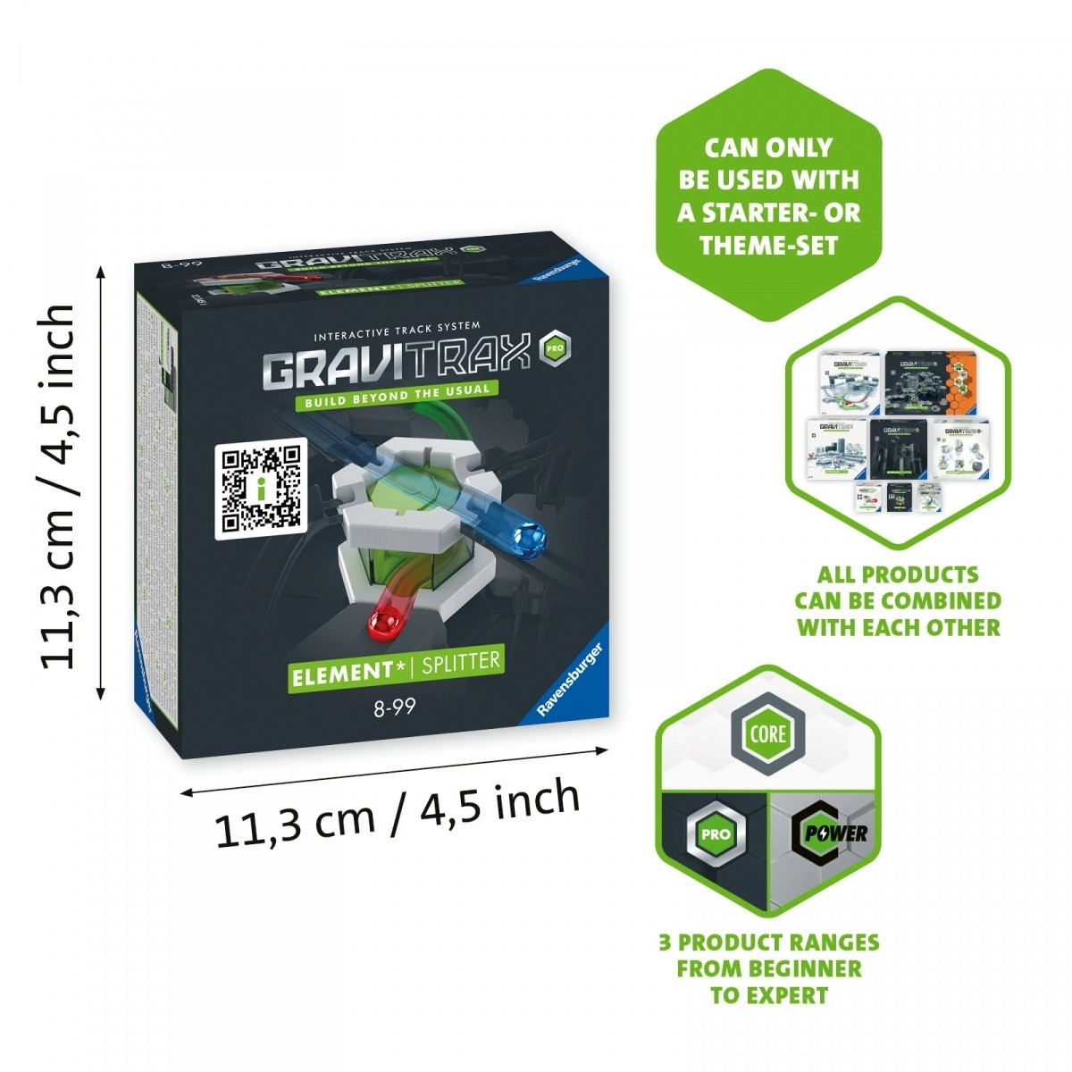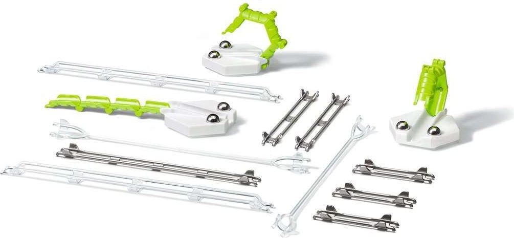 Razširitve GraviTrax (npr. Pro, Vertical, Loops, Bridges) dodajo kretnice, mostove, zanke, katapult, kladivo ali magnetni top za neskončne kombinacije, večjo hitrost in efektne trike. Vsi deli so med seboj kompatibilni in omogočajo gradnjo veličastnih 3D stez za kroglice s premišljenim usmerjanjem toka kroglic, preklapljanjem prog in natančnimi skoki.