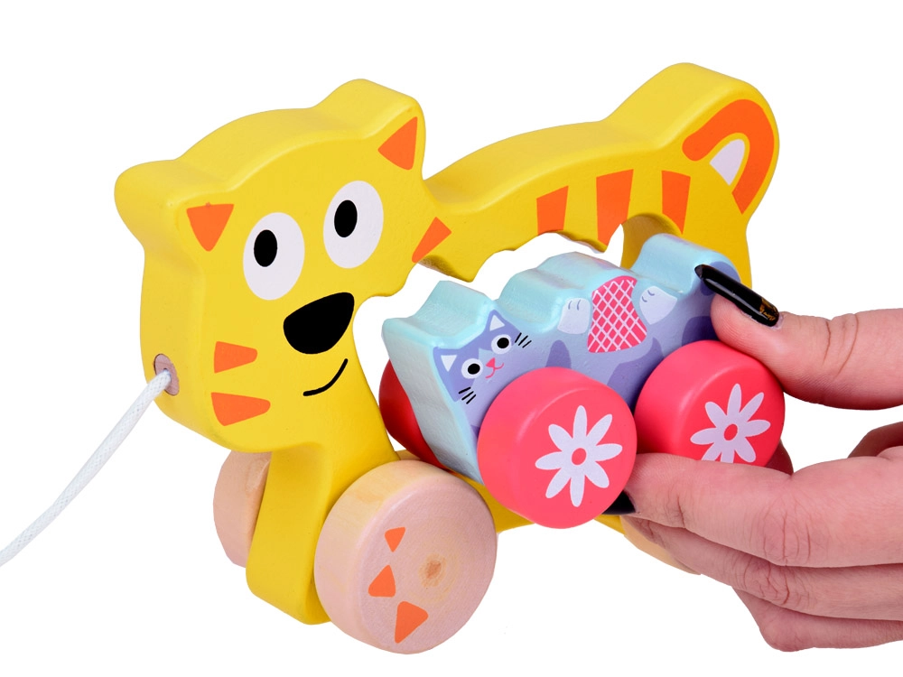 Izbira materialov in izdelave je za male ročice ključna: priljubljene so lesene vlečne igrače na vrvici iz kakovostnega lesa z barvami na vodni osnovi in gladkimi robovi. Gumijasta, tiha kolesca ščitijo tla in zagotavljajo gladko vožnjo; močna, prijetna vrvica z udobnim oprijemom omogoča varno vodenje. Lahka, a vzdržljiva konstrukcija ter dovršena zasnova (živalice, vlakci, vozeči avtomobilčki) spodbujata domišljijo in zbranost.