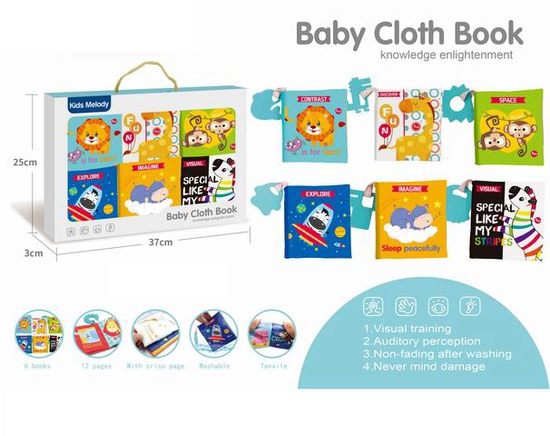 Odkrijte svet mehkih zgodb, ki jih lahko dojenčki raziskujejo z vsemi čuti – blago in tekstilne knjige so mehke, varne in interaktivne. Kontrastne črno-bele ilustracije za novorojenčke ter barviti motivi za malčke podpirajo razvoj vida, dotika in sluha. Šumeče strani, piskalica, majhno ogledalce, trakci za vlečenje in grizalo iz mehkega materiala naredijo iz vsake knjige senzorično prvo knjigo za dojenčka.
