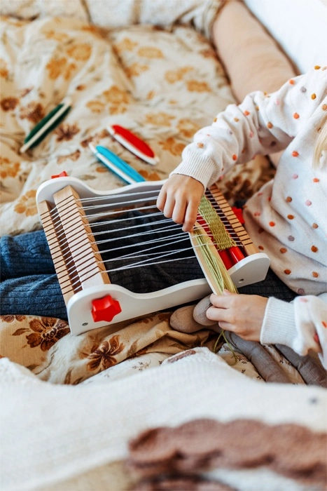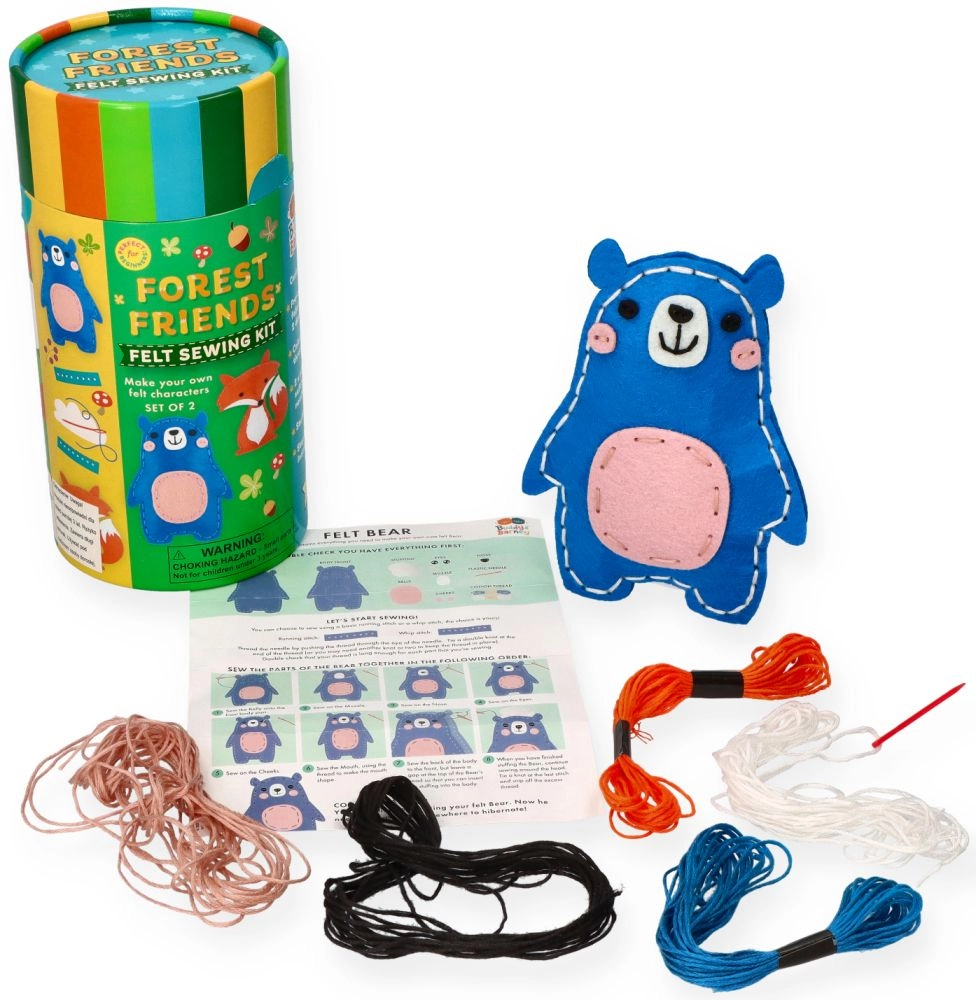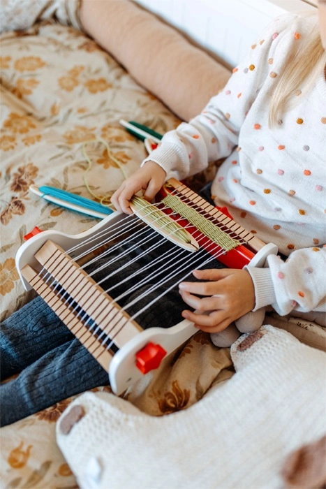 Vsak vezilni komplet za otroke običajno vsebuje varne plastične igle s topim koncem, vezilni obroč, vnaprej natisnjene motive ali preluknjane kartončke, platno ali filc ter kakovostne sukance; pletilni komplet pa vključuje pletilne igle, pletilne kroge ali kolíčkov stativ in mehko volno. Zaradi velikih lukenj, jasnih predlog in korak-za-korakom navodil je vezenje za otroke preprosto za začetnike, gladko pletenje iz preje pa je pomirjujoče in zabavno. Te ustvarjalne igrače podpirajo razvoj fine motorike, koordinacijo oko–roka in natančnost.