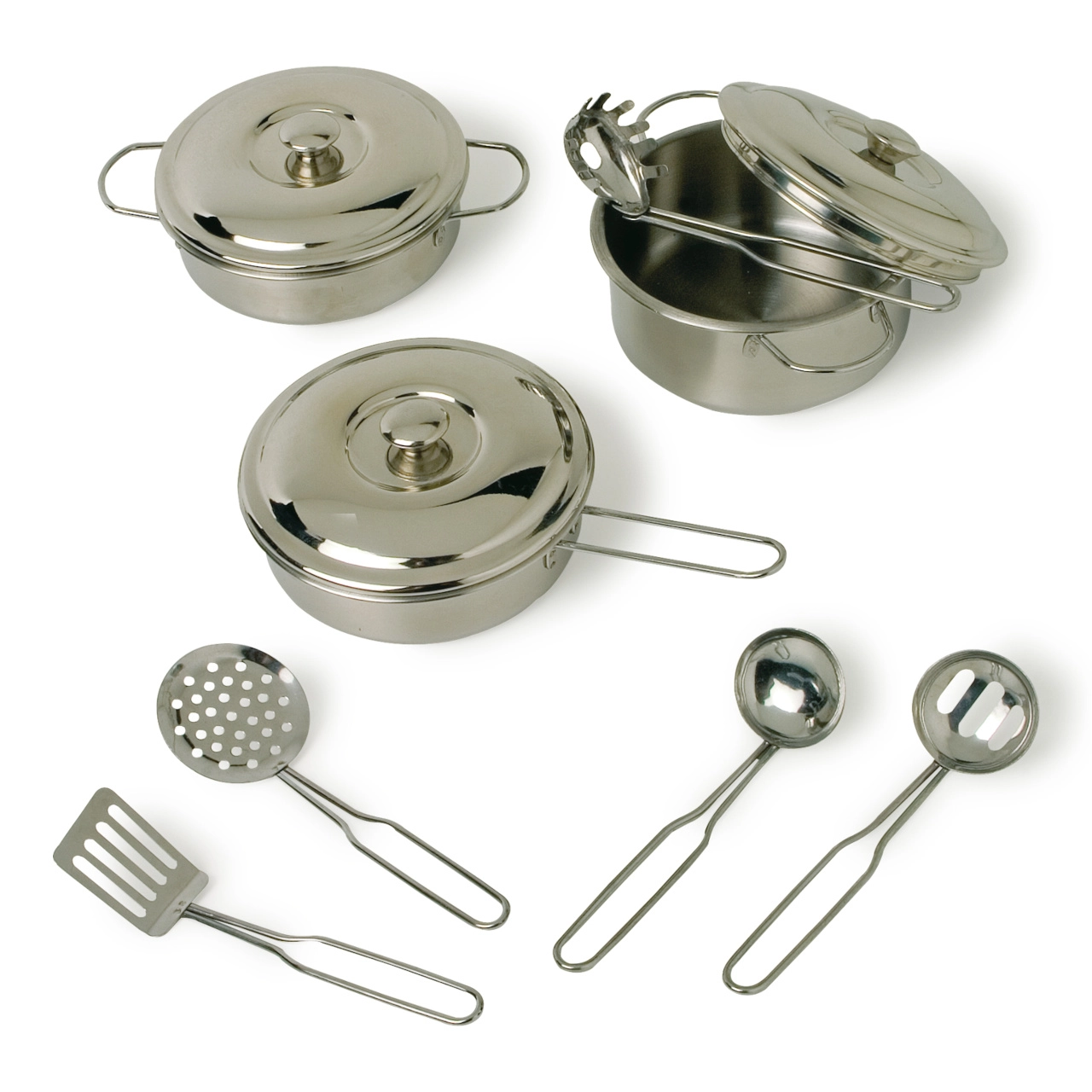 Prebudite otroško domišljijo ob štedilniku s posodicami za igralno kuhinjico, ki vsako otroško kuhinjo spremenijo v mali bistro. Otroške posodice vključujejo lonce in ponvice, pokrovke, krožničke, skodelice, skodelice in pribor ter tudi kuhinjsko orodje za otroke. Cenili boste realistične podrobnosti, varne in zdravju neškodljive materiale ter velikost, ki popolno ustreza malim rokam. Na voljo so leseni, kovinski in trpežni plastični seti, ki odlično dopolnijo vsako otroško kuhinjico.