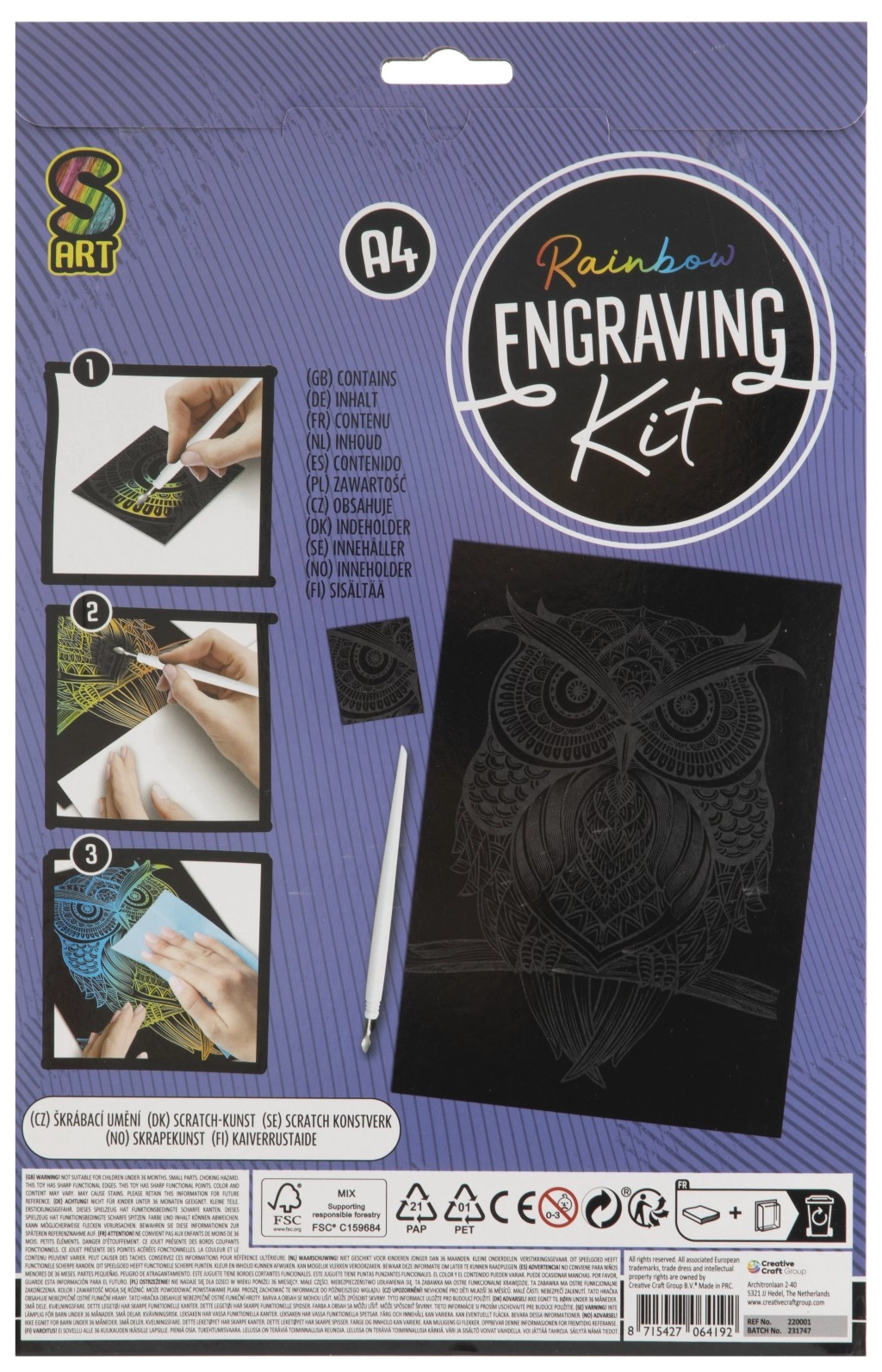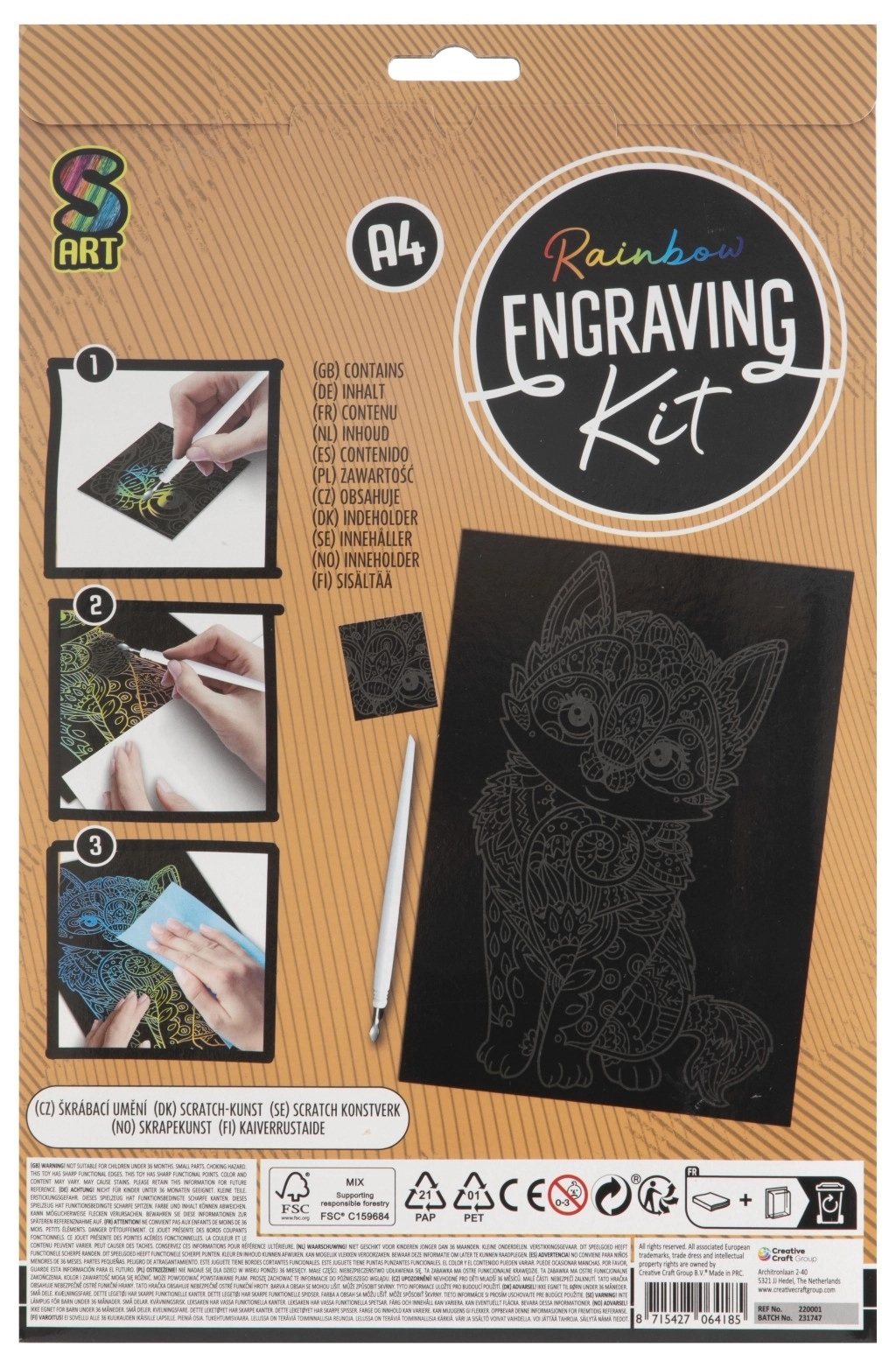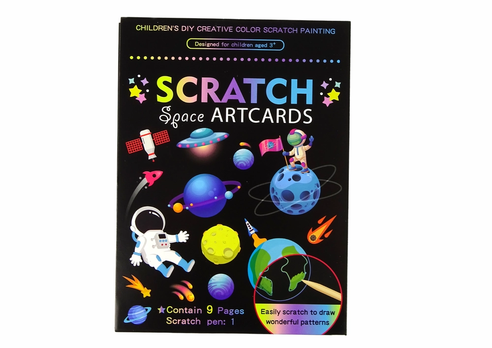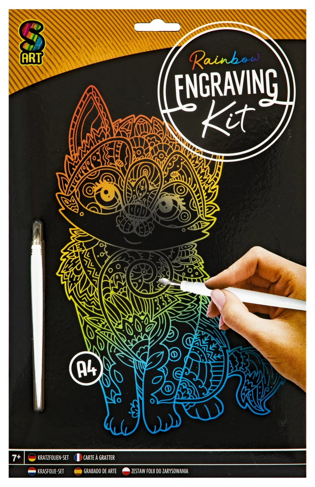 Pod črno plastjo se skriva barvni svet – le nekaj potez s praskalom in nastanejo čarobne praskanke. Scratch art (praskanke, strgalne slike) sodi med priljubljene ustvarjalne igrače in kreativne sete z mavričnimi, bleščečimi ter kovinskimi učinki in prinaša hitre rezultate. Kompleti običajno vključujejo leseno praskalo, šablone in predloge; na črnih kartonih formata A5 ali A4 zlahka ustvarite motive živali, dinozavrov, samorogov, vesolja ali mandal.
