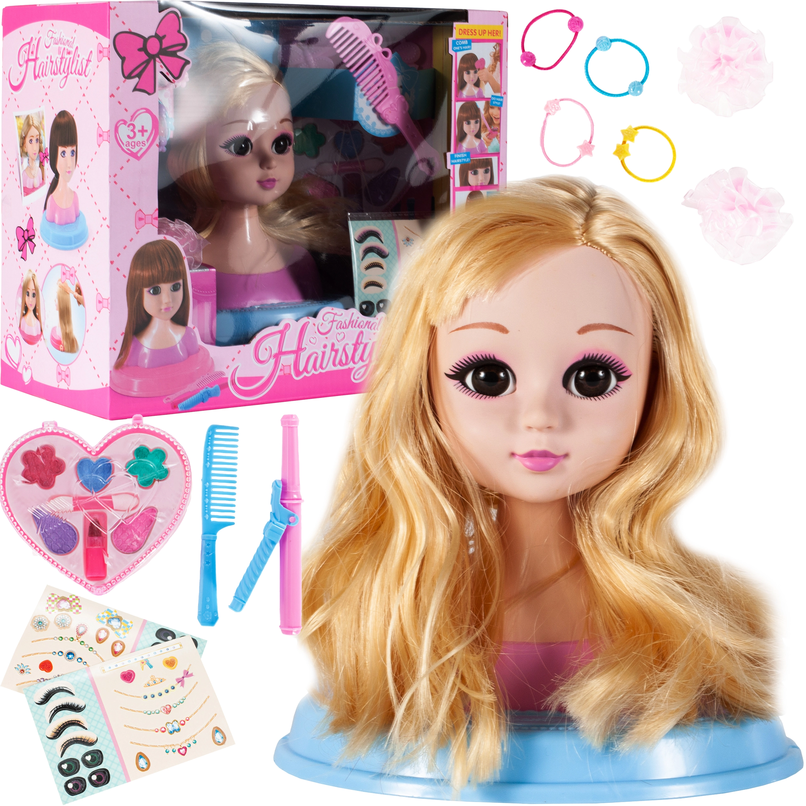 Spremenite vsako igro v mali lepotni salon z glavami za česanje in ličenjem za punčke. Glava za česanje (frizerska glava, styling head) je idealna za ustvarjanje pričesk – kitke, čopki, fige in valovi. Zahvaljujoč bogatemu dodatnemu priboru, kot so krtače, glavniki, elastike, sponke, navijalke in kronice, je igra kreativna, zabavna in navdihujoča za male frizerke in frizerje.
