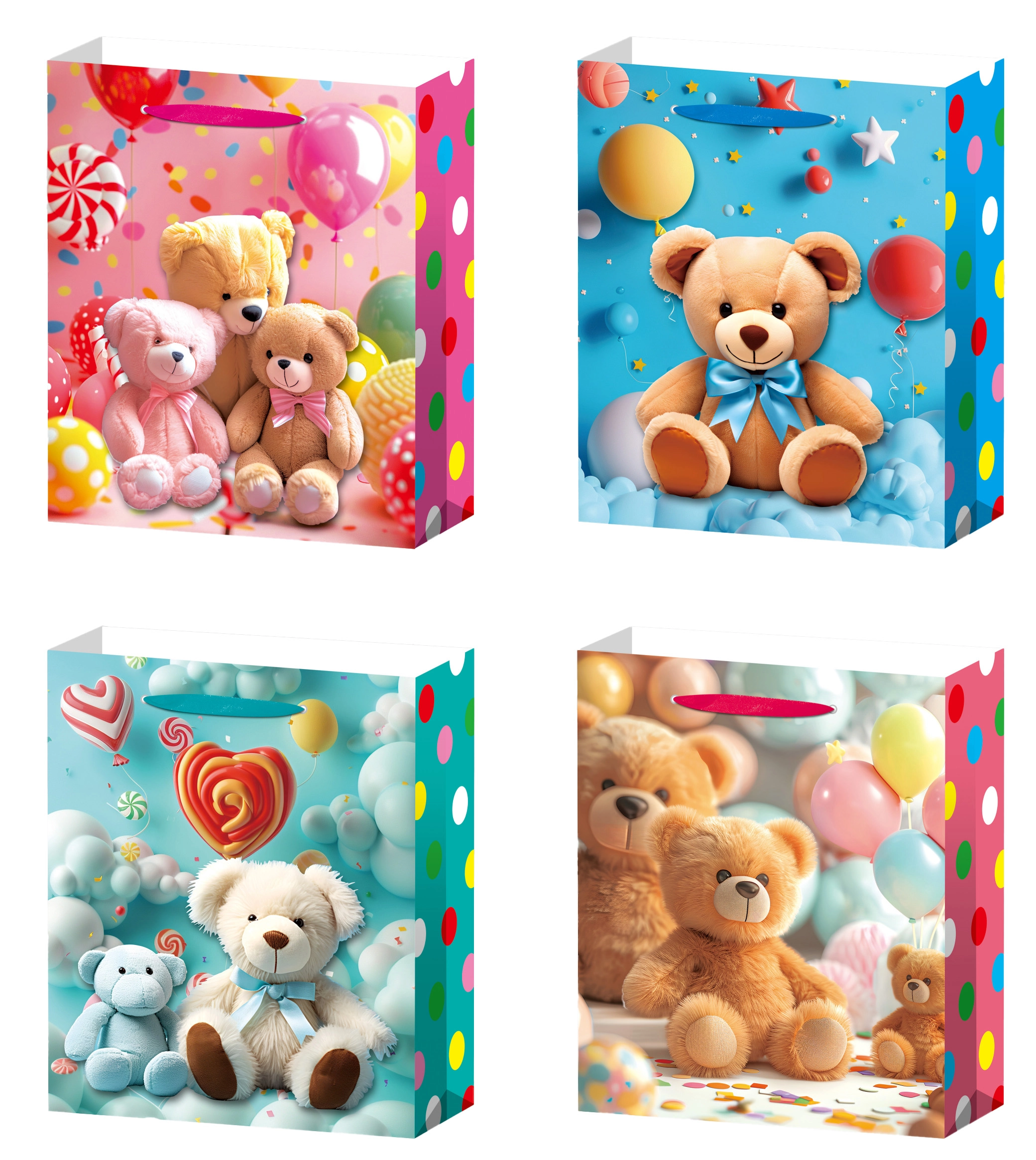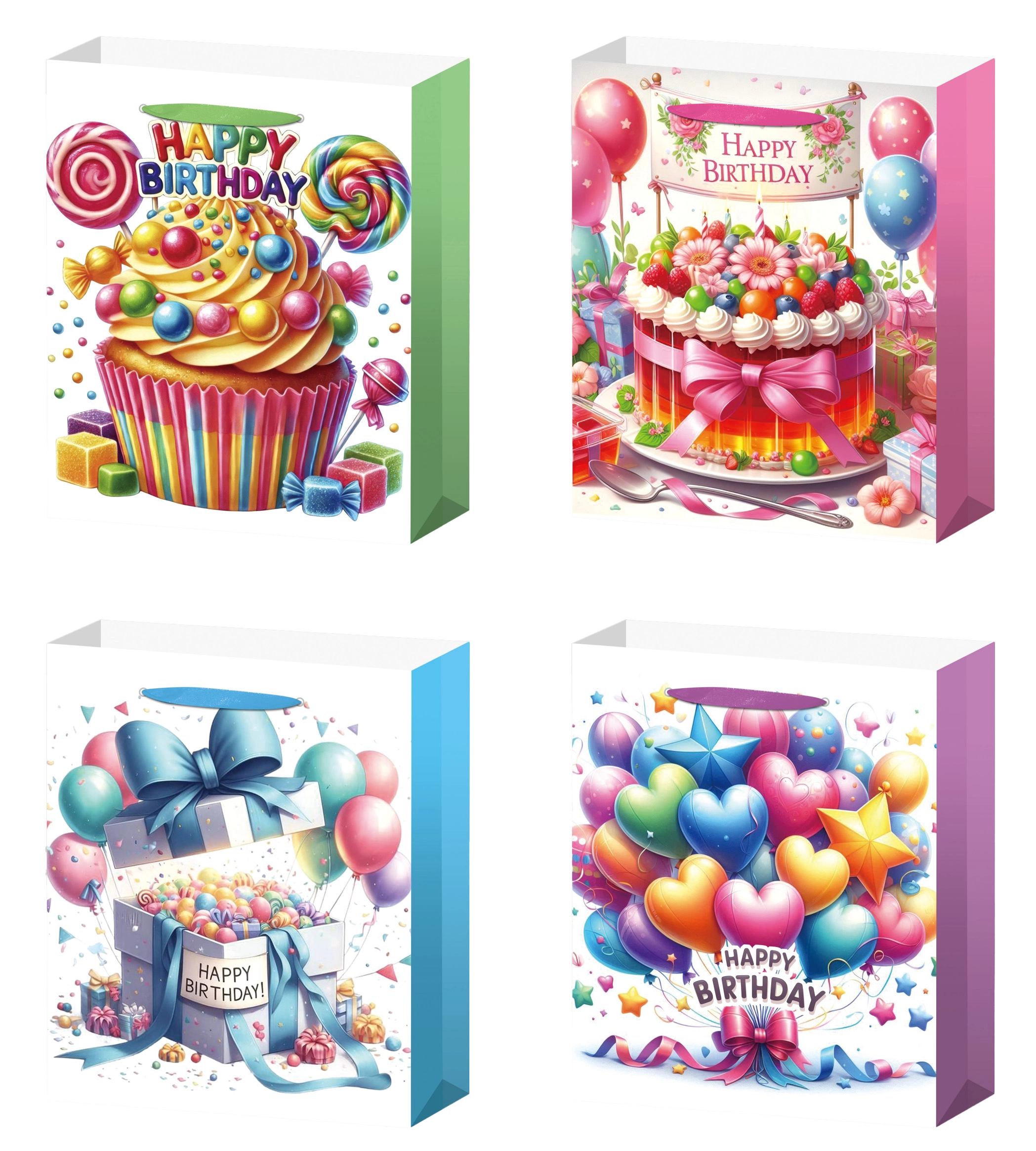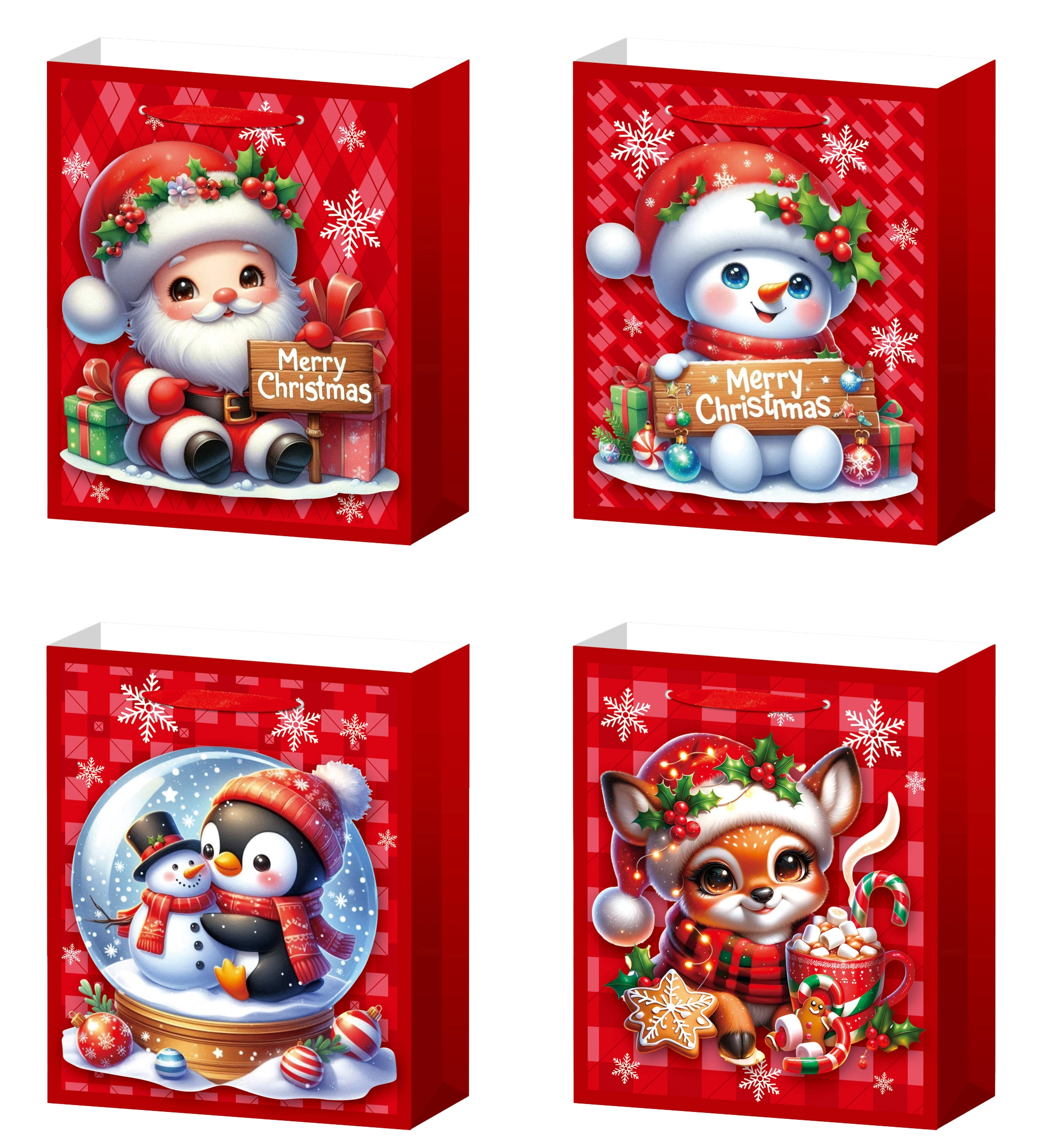 Funkcionalnost in videz gresta z roko v roki: papirnate vrečke različnih gramatur in laminacij z čvrstimi ročaji iz vrvice ali traku, vzdržljive darilne vrečke z ojačanim dnom ter vrečice z vlečno vrvico, samolepilnim zapiranjem ali zadrgo za varno pakiranje. Eko izbire vključujejo kraft in reciklirane materiale ter večkrat uporabne tekstilne vrečice. Za otroške zabave, poročna darilca in praznične trenutke boste našli rojstnodnevne in božične darilne vrečke, majhne darilne taške, vrečice za sladkarije in party pakete. Ne manjkajo otroški motivi (dinozavri, samorogi, baloni), elegantne enobarvne različice brez potiska ter dizajni s stilskim potiskom – barve in temo praznovanja boste tako zlahka uskladili.