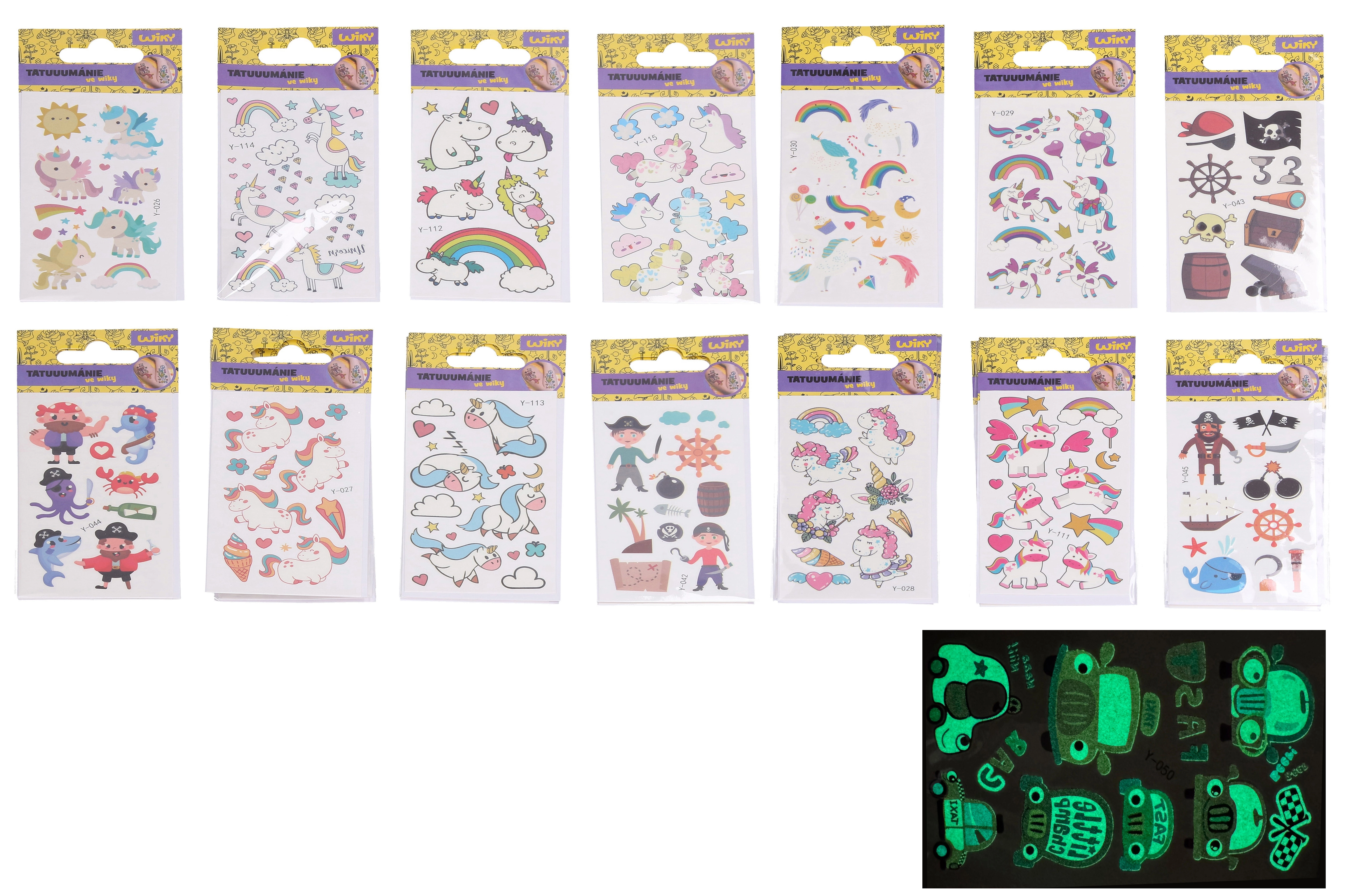 Tukaj najdete tetovirske flomastre za telo, barvne šablone, žige, bleščičaste tetovaže, tetovirske nalepke in vodne poslikave – vse z poudarkom na nestrupeni sestavi, pralnosti in preprosti uporabi. Začasne barve za telo in otroški tetovirski kompleti se preprosto obrišejo z vodo in milom, zato je eksperimentiranje z dizajni, napisi in motivi vedno brez skrbi.