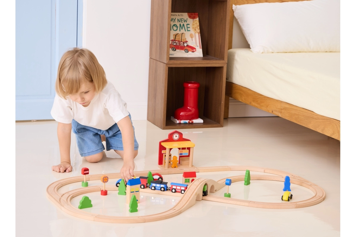 Premišljeni dodatki za leseno železnico so združljivi s priljubljenimi sistemi (BRIO, Bigjigs, Woody, IKEA LILLABO, Hape, Maxim, Eichhorn), zato lahko nove dele preprosto povežete z obstoječimi tiri. Standardni priključki in magnetne sklopke vagonov zagotavljajo preprosto montažo in trdno povezavo, kakovosten les in gladki robovi pa prinašajo vzdržljivost in dolgo življenjsko dobo. Modularni sistem podpira prilagodljivost in vsakodnevne predelave.