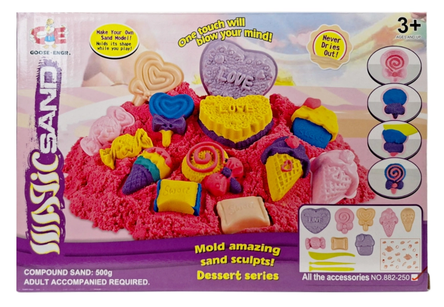 V vaše roke se vsuje svet neskončne domišljije – kinetični pesek, magični pesek in modelirni pesek za otroke spremenijo vsako mizo v majhno peskovnik z minimalnim neredom. Pesek je prijetno mehak, plastičen in drži obliko, zato zlahka ustvarite gradove, živalice in tortice z modelčki. Odličen za senzorično igro doma in v vrtcu.